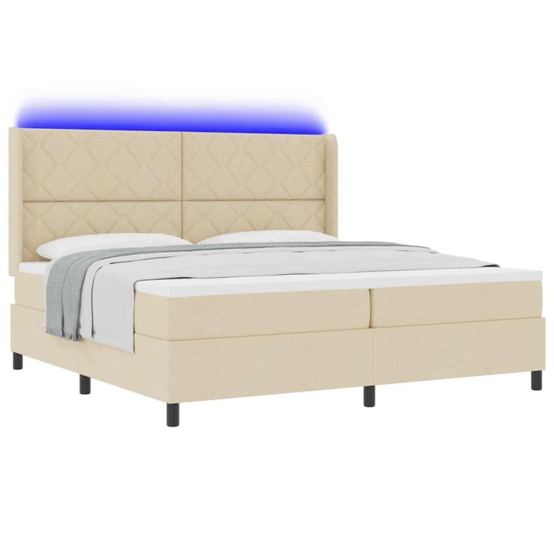 LED кутия за пружини с легло с матрак Крем 200 x 200 cm текстил