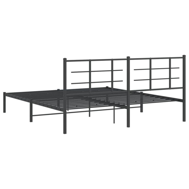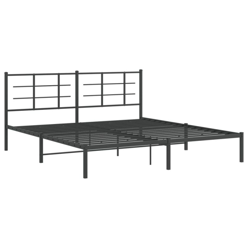 Метална рамка за легло с горна табла, черна, 180x200 см