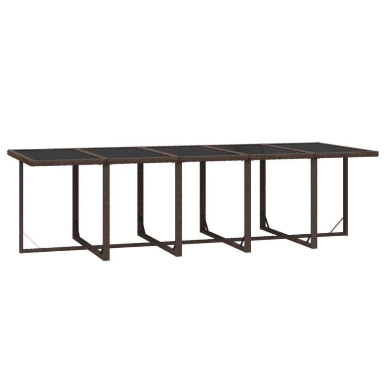 Този класически градински трапезен комплект с елегантен и съвременен дизайн ще бъде чудесен избор за хранене или почивка в градината. Подходящ за употреба на открито: Изработен от устойчив на атмосферни влияния и вода PE ратан, този външен трапезен комплект е лесен за почистване, издръжлив и подходящ за ежедневна употреба. Здрава рамка: Прахово боядисаната стоманена рамка прави трапезния комплект за вътрешен двор здрав и издръжлив. Комфортно изживяване: Пухкавите, меки и запълнени с пяна възглавници за сядане и облягане също допринасят за допълнителния комфорт при седене. Гъвкав дизайн: Можете да дръпнете облегалките надолу и да съхранявате столове под масата, спестявайки ценно място за съхранение, когато комплектът не се използва. Благодарение на олекотената конструкция всички елементи са лесни за преместване. Забележка:Забележка: За да удължите живота на вашите градински мебели, ви препоръчваме да ги защитите с водоустойчиво покритие. Максимално 110 кг на седалка. Съобразете се с риска от открит огън и други източници на силна топлина в близост до продукта.
