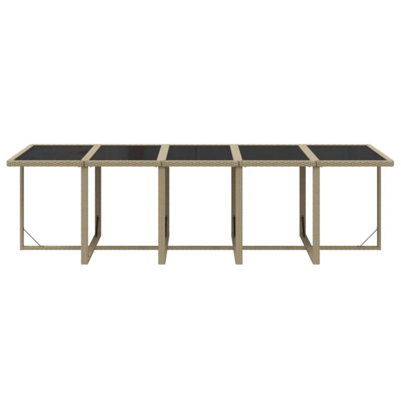 Този класически градински трапезен комплект с елегантен и съвременен дизайн ще бъде чудесен избор за хранене или почивка в градината. Подходящ за употреба на открито: Изработен от устойчив на атмосферни влияния и вода PE ратан, този външен трапезен комплект е лесен за почистване, издръжлив и подходящ за ежедневна употреба. Здрава рамка: Прахово боядисаната стоманена рамка прави трапезния комплект за вътрешен двор здрав и издръжлив. Комфортно изживяване: Пухкавите, меки и запълнени с пяна възглавници за сядане и облягане също допринасят за допълнителния комфорт при седене. Гъвкав дизайн: Можете да дръпнете облегалките надолу и да съхранявате столове под масата, спестявайки ценно място за съхранение, когато комплектът не се използва. Благодарение на олекотената конструкция всички елементи са лесни за преместване. Забележка:Забележка: За да удължите живота на вашите градински мебели, ви препоръчваме да ги защитите с водоустойчиво покритие.
