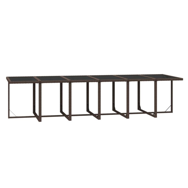 Този полиратанов градински трапезен комплект с елегантен и уникален дизайн е чудесен избор за вечеря и почивка във вашето външно жилищно пространство. Практичен материал: Обвит с устойчив на атмосферни влияния PE ратан, този външен трапезен комплект е лесен за почистване и издръжлив, осигурявайки години на качествена почивка.Стабилна и здрава конструкция: Стоманените рамки на градинската маса и столовете осигуряват здравина и стабилност.Гъвкави столове: Можете да дръпнете облегалките надолу и да съхранявате външните столове под масата, спестявайки ценно място за съхранение, когато комплектът не се използва. Благодарение на олекотената конструкция всички елементи са лесни за преместване.Комфортно изживяване: Пухкавите, меки и запълнени с пяна възглавници за сядане и облягане също допринасят за допълнителния комфорт при седене. Забележка:Забележка: За да удължите живота на вашите градински мебели, ви препоръчваме да ги защитите с водоустойчиво покритие. Максимално 110 кг на седалка. Съобразете се с риска от открит огън и други източници на силна топлина в близост до продукта.