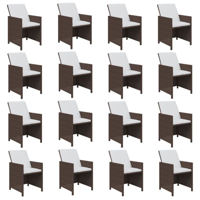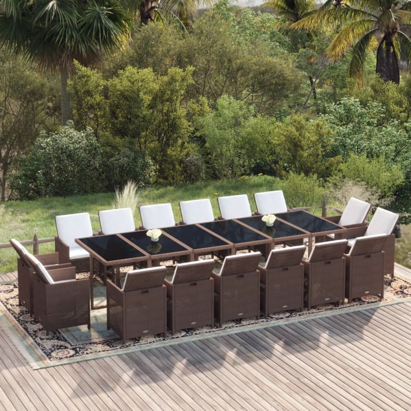 Градински комплект с възглавници, 17 части, полиратан, кафяв