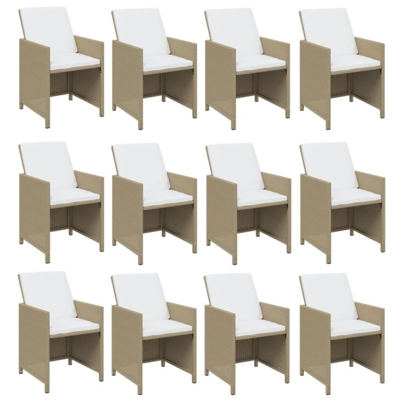 Градински комплект с възглавници, 13 части, полиратан, бежов