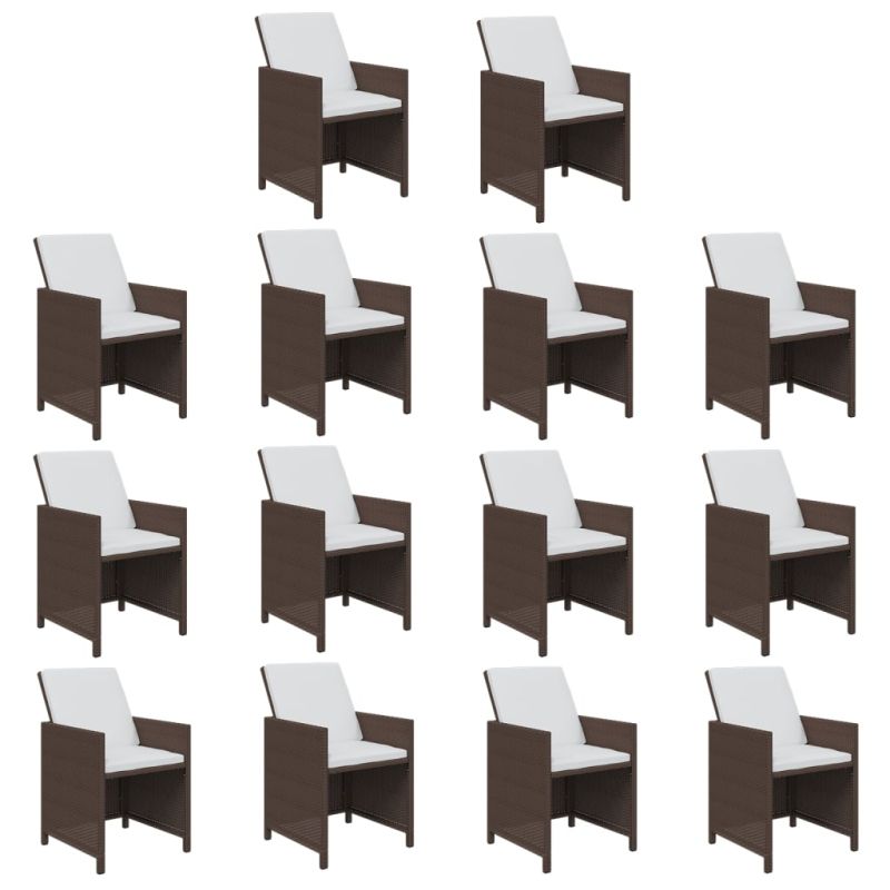 Градински комплект с възглавници, 19 части, полиратан, кафяв