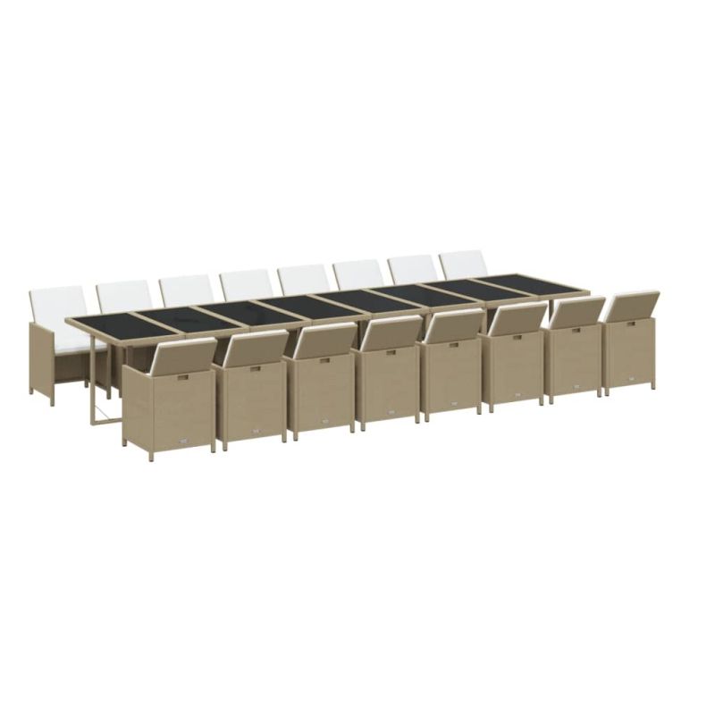 Този полиратанов градински трапезен комплект с елегантен и уникален дизайн е чудесен избор за вечеря и почивка във вашето външно жилищно пространство. Практичен материал: Обвит с устойчив на атмосферни влияния PE ратан, този външен трапезен комплект е лесен за почистване и издръжлив, осигурявайки години на качествена почивка.Стабилна и здрава конструкция: Стоманените рамки на градинската маса и столовете осигуряват здравина и стабилност.Гъвкави столове: Можете да дръпнете облегалките надолу и да съхранявате външните столове под масата, спестявайки ценно място за съхранение, когато комплектът не се използва.Комфортно изживяване: Пухкавите, меки и запълнени с пяна възглавници за сядане и облягане също допринасят за допълнителния комфорт при седене. Забележка:Забележка: За да удължите живота на вашите градински мебели, ви препоръчваме да ги защитите с водоустойчиво покритие.