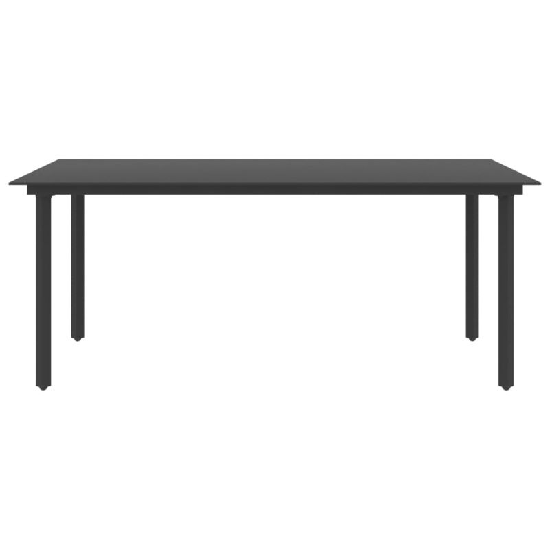 Градинска трапезна маса, черна, 190x90x74 см, стомана и стъкло