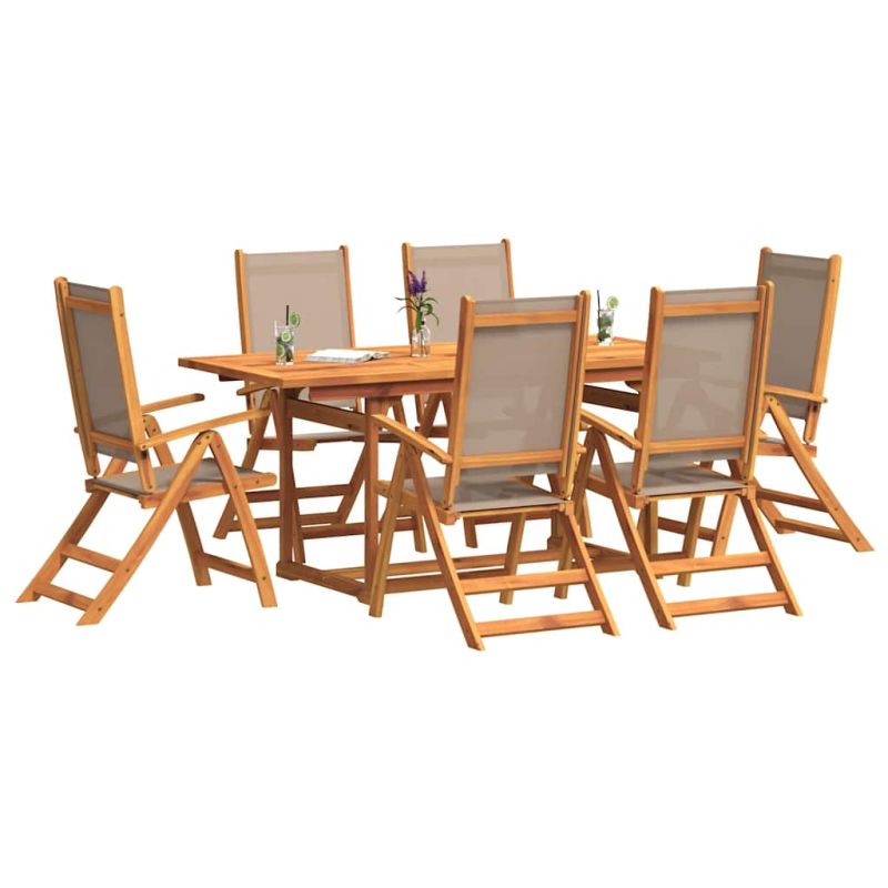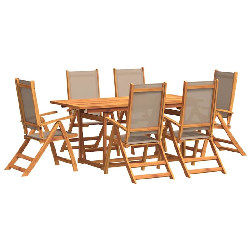 Градински трапезен комплект, 7 части, акация масив и textilene