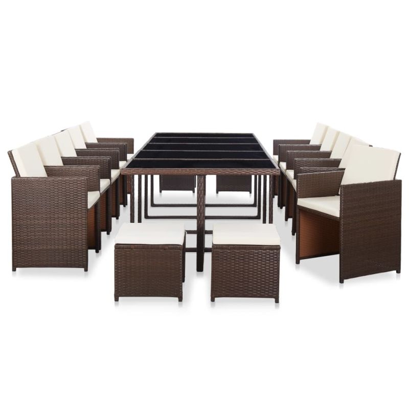Градински комплект с възглавници, 15 части, кафяв полиратан