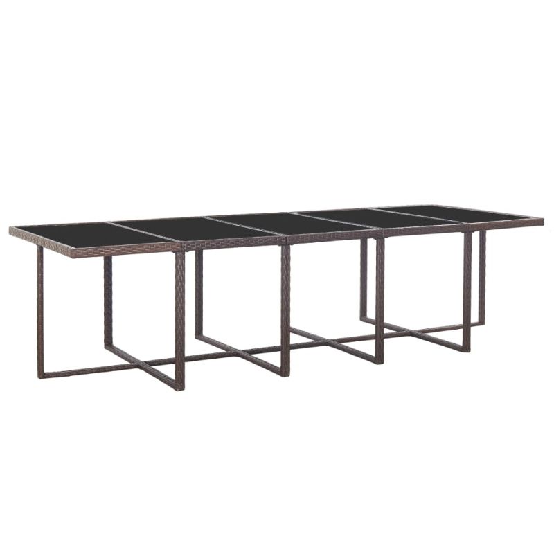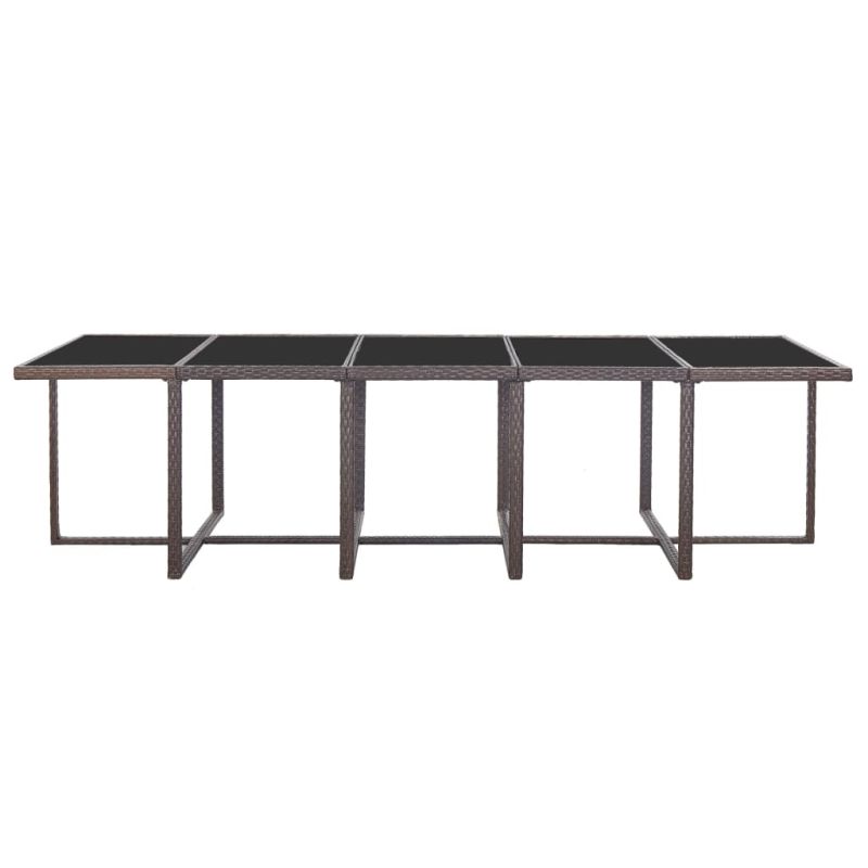 С издържлива стоманена рамка и стилен дизайн, нашият трапезен комплект от ратан е идеален избор за вашето открито пространство. Той ще осигури удобно място за семейството ви за вечеря, четене или почивка. Стоманената рамка придава здравина, докато устойчивият на влага и различни атмосферни условия полиратан прави комплекта лесен за почистване. Понеже конструкцията е лека, мебелите са лесни за местене. Дебелите подвижни възглавници на седалките и облегалките, изработени от водоотблъскващ полиестер, безспорно ще предложат максимален комфорт при седене. В допълнение, табуретките могат да се съхраняват под столовете, докато същевременно комбинираните табуретки и столове могат да се съхраняват под масата, когато не се използват, за да спестят повече място! Доставката включва 1 маса със стъклен плот, 10 ратанови стола, 4 табуретки и 24 подвижни възглавници. Забележка: Препоръчваме да покривате комплекта по време на дъжд, сняг и скреж с цел максимално продължителна употреба.