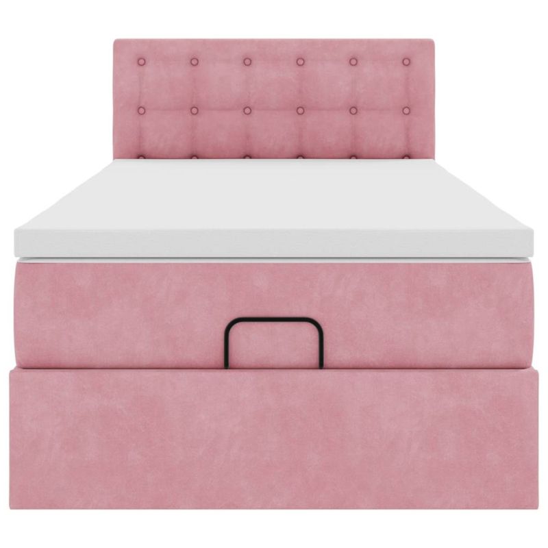 Османска легло с матрак и LED, розово, 100x200 см, кадифе