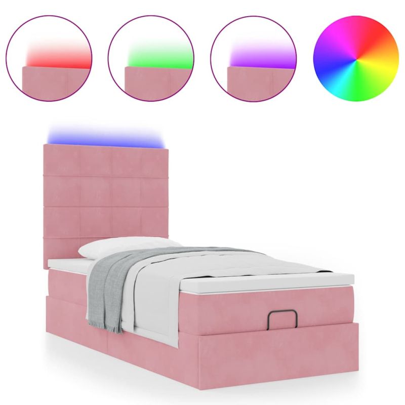 Османска легло с матраци и LED, розово, 100x200 см, кадифе