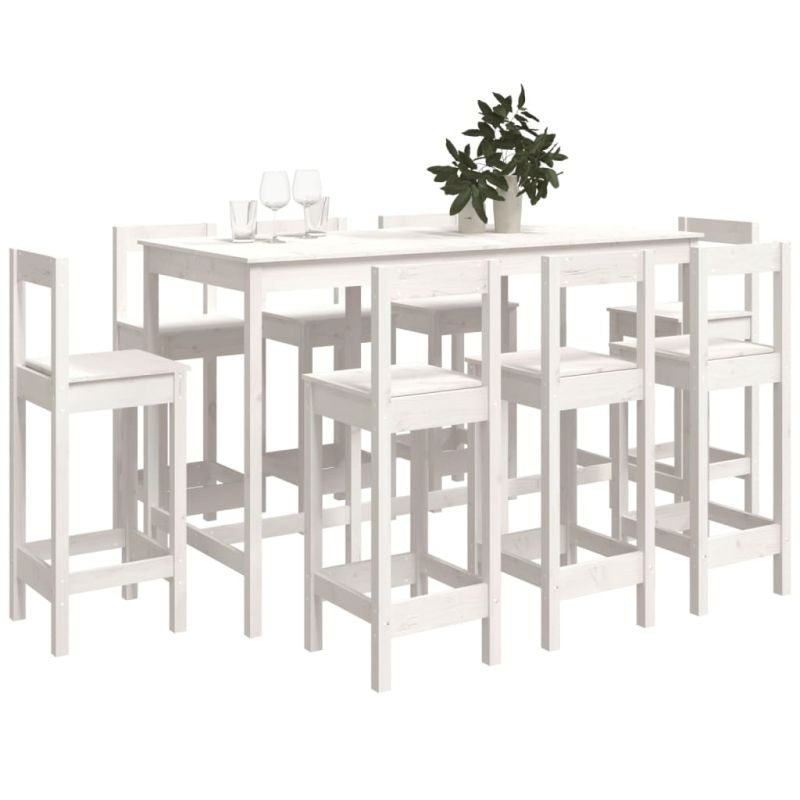 Бар комплект от 9 части, бял, масивна борова дървесина