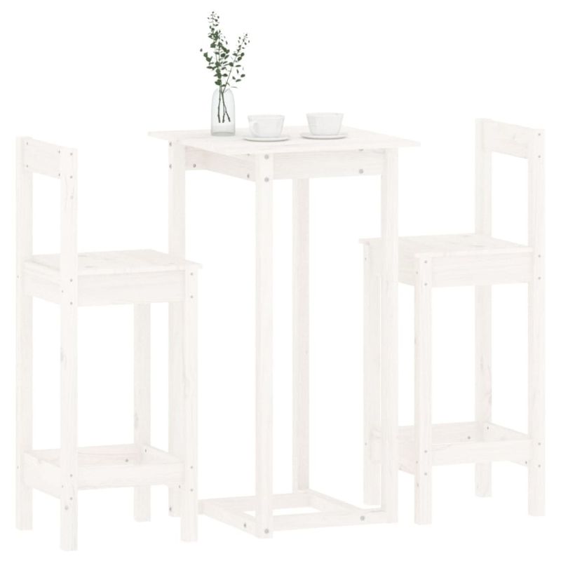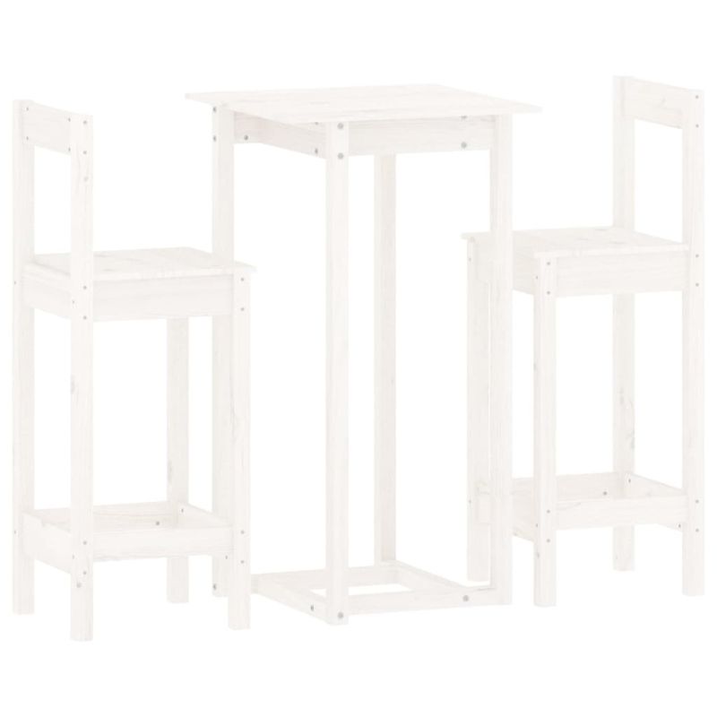 Бар комплект от 3 части, бял, масивна борова дървесина