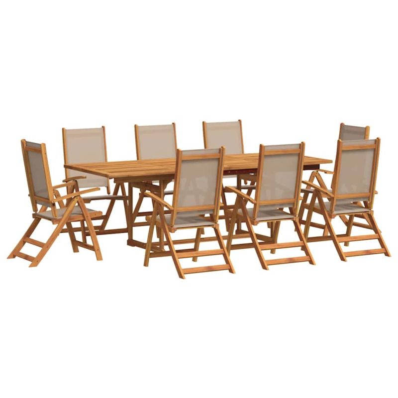 Градински трапезен комплект, 9 части, акация масив и textilene