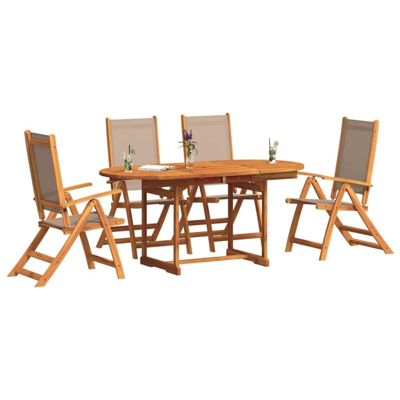 Градински трапезен комплект, 5 части, акация масив и textilene