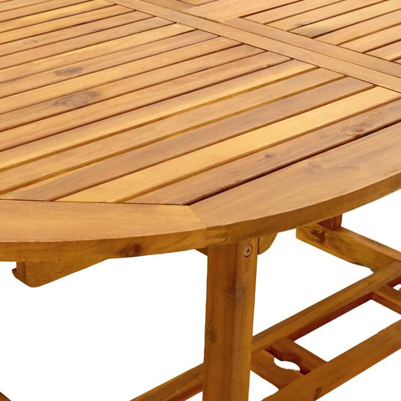 Насладете се на хубаво ястие на открито със семейството и приятелите си с този дървен градински трапезен комплект! Масивно акациево дърво: Външният трапезен комплект е изработен от масивно акациево дърво. Масивното акациево дърво е красив естествен материал. Акациевото дърво е тропическа твърда дървесина, която е плътна, здрава и издръжлива. Регулируема и сгъваема функция: Градинският стол може да се регулира в 5 позиции, така че винаги можете да намерите най-удобната позиция за сядане. Освен това може да се сгъва, за да се пести място, когато не се използва. Практичен дизайн: Благодарение на специалния си дизайн, тази външна маса може да се разпъне, когато е необходимо допълнително пространство. В допълнение в плота на масата има отвор за чадър, за да можете лесно да прикрепите чадър и да създадете сенчесто място. Здрав плот: Тази градинска маса за хранене ви осигурява здрав плот. Можете да поставите леки закуски, напитки и всякакви любими декорации. Лесна за почистване повърхност: Покритата с масло повърхност прави тази градинска маса за хранене и столове лесни за почистване с влажна кърпа. Добре е да се знае:За да сте сигурни, че вашите външни мебели ще останат красиви, ви препоръчваме да ги защитите с водоустойчиво покривало. Максимално 110 кг на седалка.