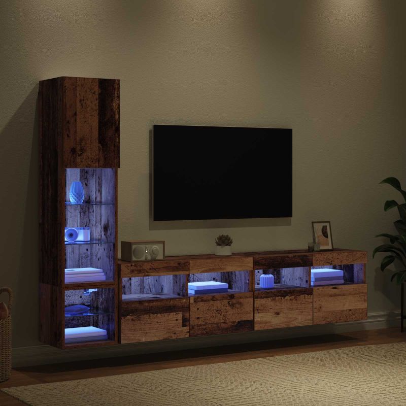 Телевизионен стенен шкаф 4 pcs Старо дърво Инженерно дърво