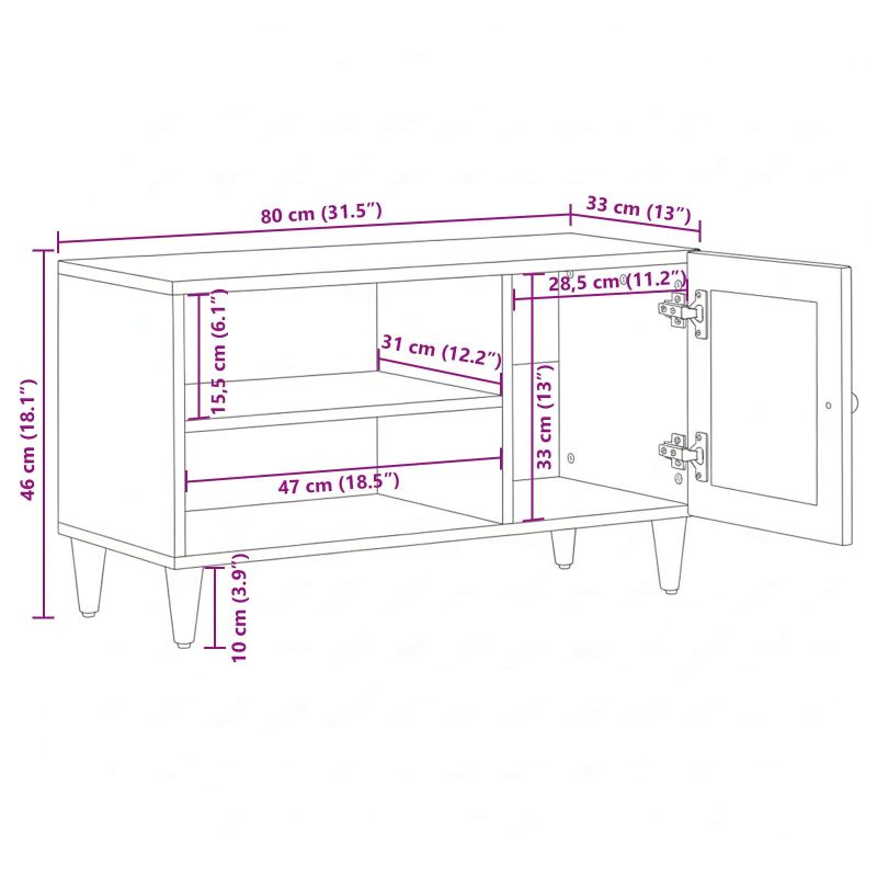 ТВ шкаф с врата Естествен 80 x 33 x 46 см Солидно мангово дърво