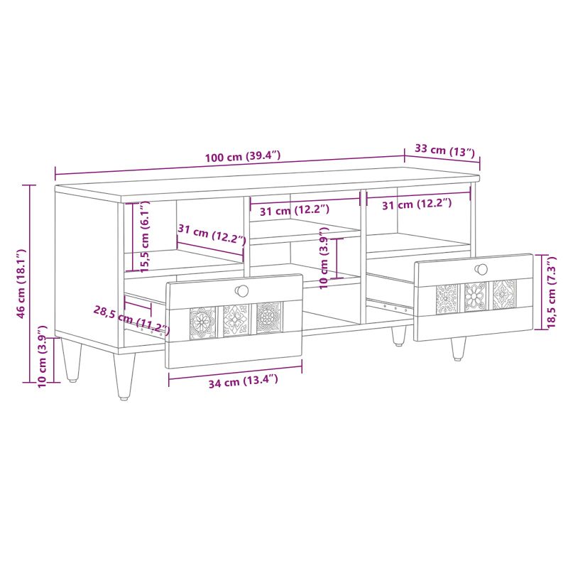 ТВ шкаф с рафт Естествен 100 x 33 x 46 см Солидно мангово дърво