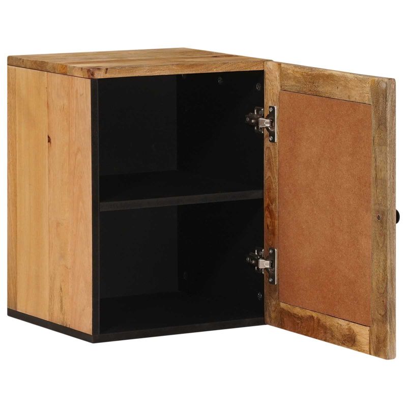 Този шикозен окачен шкаф за баня е перфектно решение за подредба на банята ти. С модерен стил, той привлича с изчистени линии и ненатрапчив дизайн, идеален за подобряване на всяка баня. С топлите си кафяви нюанси и минималистичен вид, шкафът отлично се вписва в съвременни домове, предлагаща функционалност и визуална привлекателност. Монтиран на нивото на очите, усъвършенства достъпа до нещата и оптимизира пространството, без да жертва стила в помещението. Масивно мангово дърво: Кабинетът е с мощна конструкция от мангово дърво. Известно със своята плътност и издръжливост, манговото дърво осигурява сила и дълготрайност, гарантирайки дългосрочна употреба. Природните шарки и наситените кафяви цветове създават уют и елегантност, повишавайки визуалната стойност на банята. Модерни метални детайли: Тези стилни метални крака допълват дървената конструкция. Черният им цвят осигурява стабилност и добавя модерен акцент, като запазва стилния вид на шкафа. Практичен дизайн: Фокусът на шкафа е върху функционалността, предлагайки достатъчно затворено пространство зад елегантните врати от мангово дърво. Този подреден дизайн предлага удобство при организиране и съхранение на тоалетни принадлежности, кърпи и други важни неща. Спестяващо пространство решение: Този окачен шкаф е чудесен за бани с малко подово пространство. Повдигайки съхранението на стените, ти запазваш място за други нужди, добавяйки повече отворено и приветливо пространство за банята. Лесна поддръжка: Поддържането му в отличен вид е лесно. Просто избърсвай повърхностите с влажна кърпа и готово. Този бърз процес на почистване гарантира, че шкафът остава стилен детайл в банята ти години напред.
