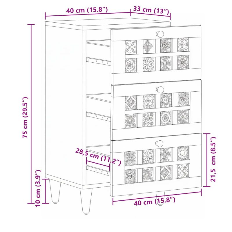 Служебен шкаф Естествен 40 x 33 x 75 см Солидно мангово дърво