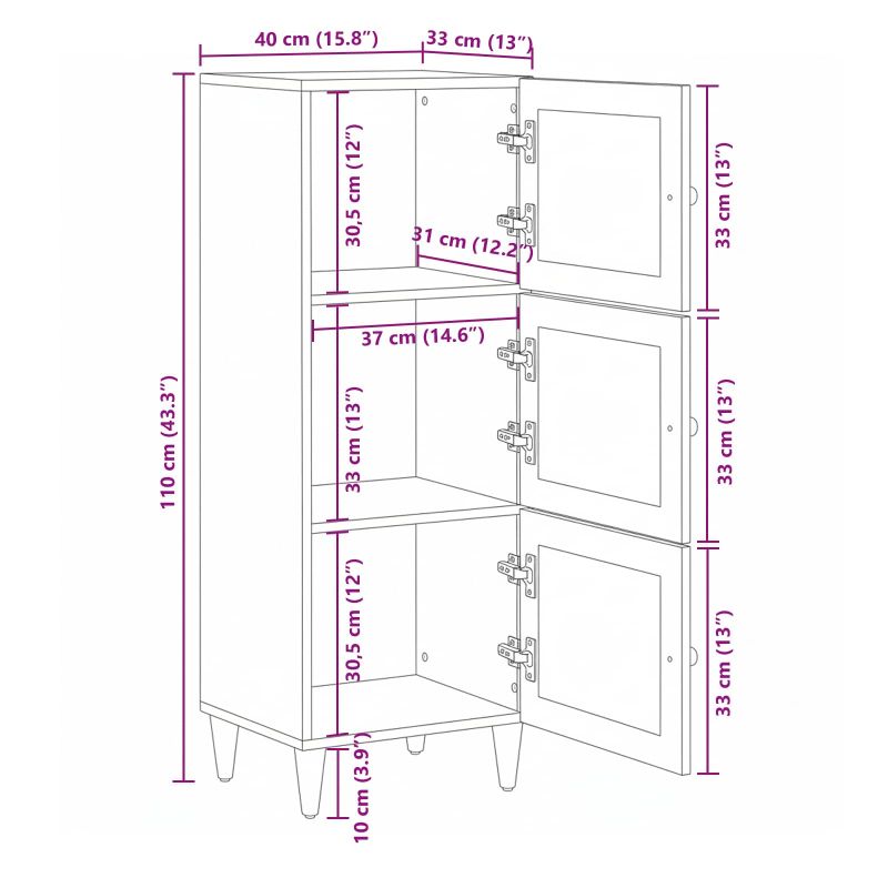 Този модерен висок шкаф добавя функционалност и стил на всяка трапезария или хол. С елегантен, правоъгълен дизайн и качествени материали, той внася съвременен дух в интериора. Проектиран е за хора, които търсят баланс между естетика и полезност, идеално се вписва в различни стилове и предлага основни опции за съхранение. Изработени материали: Високият шкаф е направен от здраво мангово дърво, което му придава красота и елегантност. Инженерната дървесина също увеличава стабилността, което го прави надежден за дълго време. Функционални компоненти: Вратите с панти се отварят и предлагат много място за съхранение, а квадратните дървени крака осигуряват стабилност. Дръжките с копчета са удобни за ползване и се вписват в елегантния дизайн. Сложен стил: Със съвременната си визия и чисти линии, този шкаф е подходящ за разнообразни среди. Дизайнът му позволява да бъде акцент в стаята, без да я затрупва. Универсално приложение: Перфектен за трапезарии или всекидневни, той предлага практично съхранение за чинии, книги или декорации, като се адаптира към нуждите на социални събирания. Лесно поддържане: Поддържайте го чист с суха кърпа и избягвайте агресивни химикали, за да запазите добрия му вид. Лесно се сглобява с двама души и отвертка, което го прави удобен за разполагане.