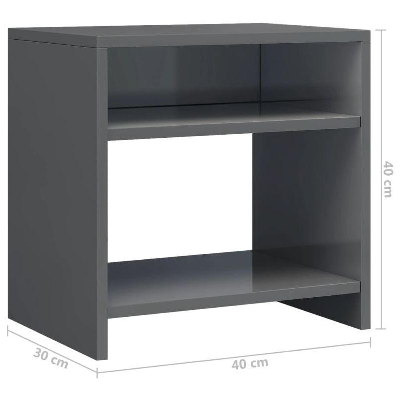 Нощно шкафче, сив гланц, 40x30x40 см, инженерно дърво