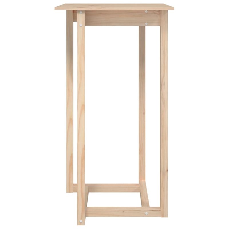 Сипете си чаша от любимото вино или се насладете на приятна вечеря със семейството и приятелите си около тази красива дървена бар маса. Борово дърво масив: Тази парти маса е изработена от борово дърво масив. Масивната борова дървесина е красив естествен материал. Боровата дървесина е с продълговати шарки, а чеповете придават на материала характерния му рустик вид.Стабилна рамка: Дървената рамка осигурява здравина и стабилност.Стабилен плот: Холната маса има стабилен плот, който е идеален за поставяне на вашите напитки, храна и други декоративни елементи. Забележка:Всеки продукт се доставя с ръководство за сглобяване в кашона за лесно сглобяване.