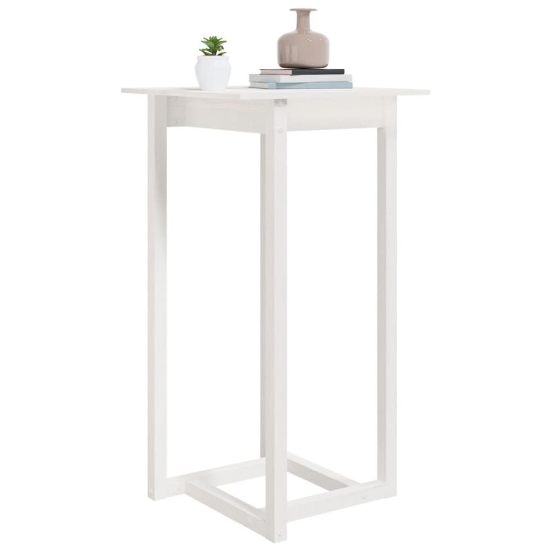 Бар маса, бяла, 60x60x110 см, борово дърво масив