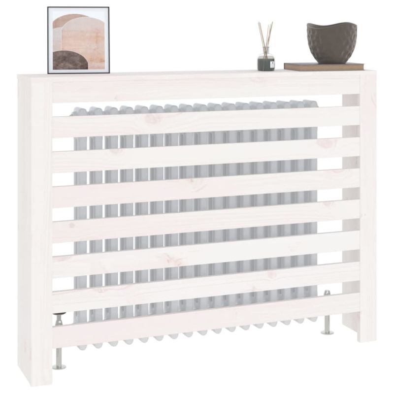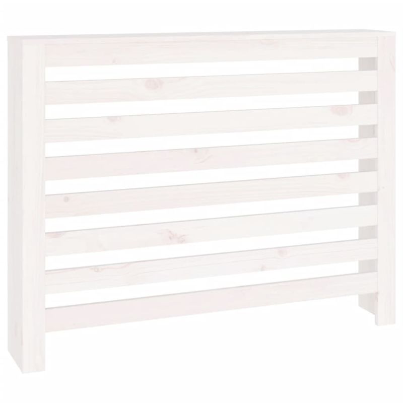 Параван за радиатор бял 108,5x19x84 см борово дърво масив