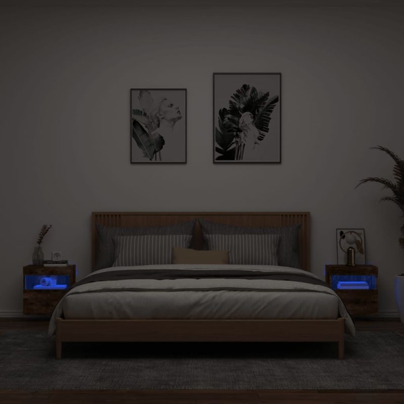 Стенни ТВ шкафове с LED лампи, 2 бр, опушен дъб, 40x30x40 см