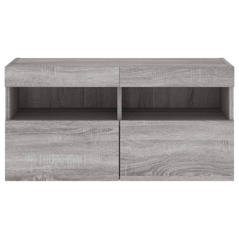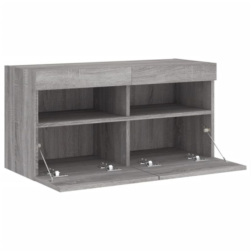 Стенен ТВ шкаф с LED осветление, сив сонома, 80x30x40 см
