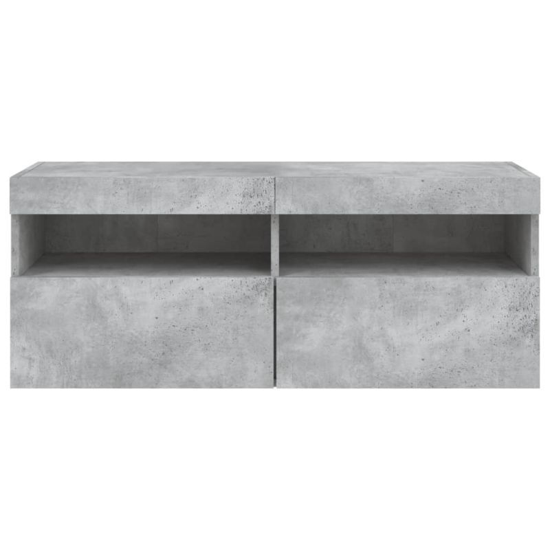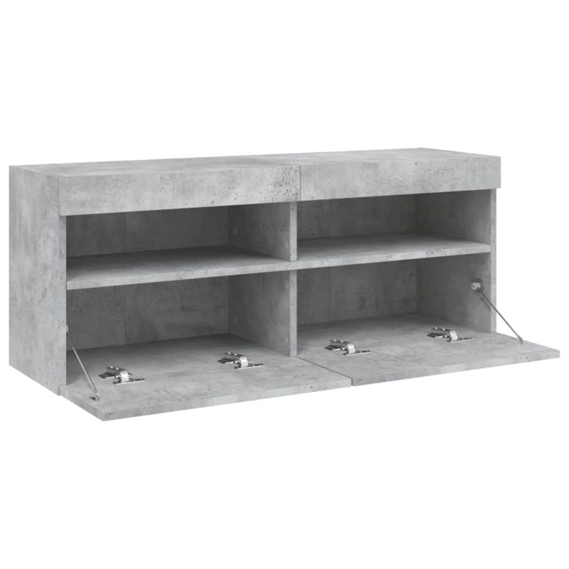Стенен ТВ шкаф с LED осветление, бетонно сив, 100x30x40 см