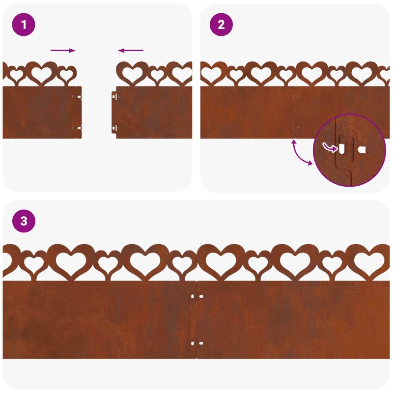 Това елегантно метално ограждане за трева предлага стилно решение за оформяне на градински легла и пътеки, лесно сливайки се с различната ландшафтна среда. Със своите изчистени линии и минималистичен стил, то подобрява визуалната стойност на градините и терасите, предлагайки форма и функция. Осигурете добре организирано открито пространство и добавете архитектурен елемент към градината. Създадено за хора, които ценят простотата в дизайна, това ограждане съчетава привлекателност с практичност. Издръжливи материали Изработено от здрава метална конструкция, което гарантира, че огражденията ви ще устоят на всякакви метеорологични условия. Металът осигурява дълготрайност, дори при много екстремни условия. Модерен стил С чисти и елегантни линии, ограждането е чудесно допълнение към съвременни градини и мебели, предлагаща ненатрапчива елегантност. Практическа функционалност Ограничава разпространението на тревата и осигурява ясна граница между тревната площ и цветните лехи или пътеки, поддържайки градината подредена. Лесна инсталация Монтажът изисква двама души и отвертка, предлагаща лесен начин за постигане на професионални резултати в градината. Инструкции за поддръжка Можете лесно да поддържате ограждането, само с избърсване с влажна кърпа за премахване на замърсявания.