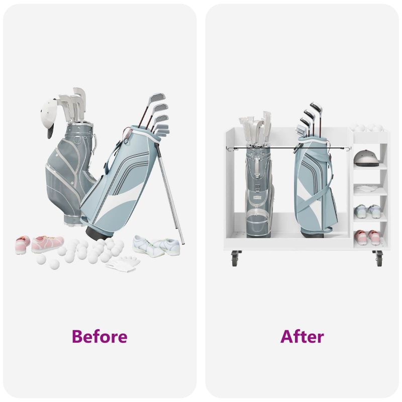Начало Спорт и фитнес Отдих на открито Голф Аксесоари за чанти за голф Голф шкаф с колело Едноцветен Бяло 120 x 45 x 98 см