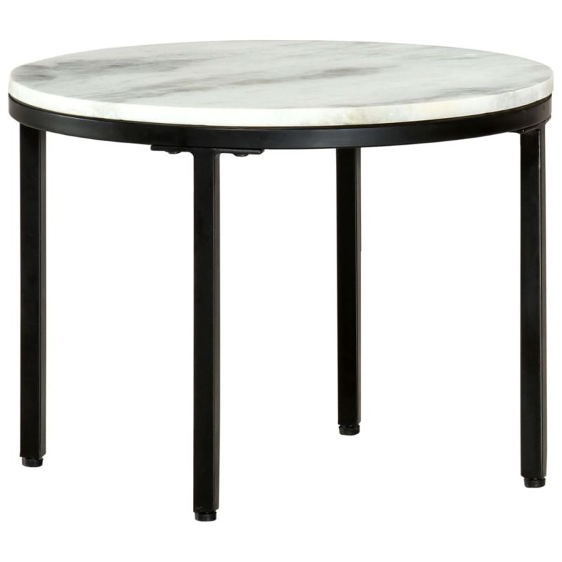 Вкарайте усещане за съвременен чар във вашия интериор с тази класическа маса за кафе в минималистичен стил! Страничната маса се отличава с плот от естествен плътен мрамор и черни крака от прахово боядисана стомана, която е изключително издръжлива и здрава. Мраморната кафе масичка се почиства лесно само с влажна кърпа. Отпуснете се и се насладете на забавления с вашето семейство и приятели около тази акцентна маса! Артикулът е сглобен предварително; не се изисква монтаж.