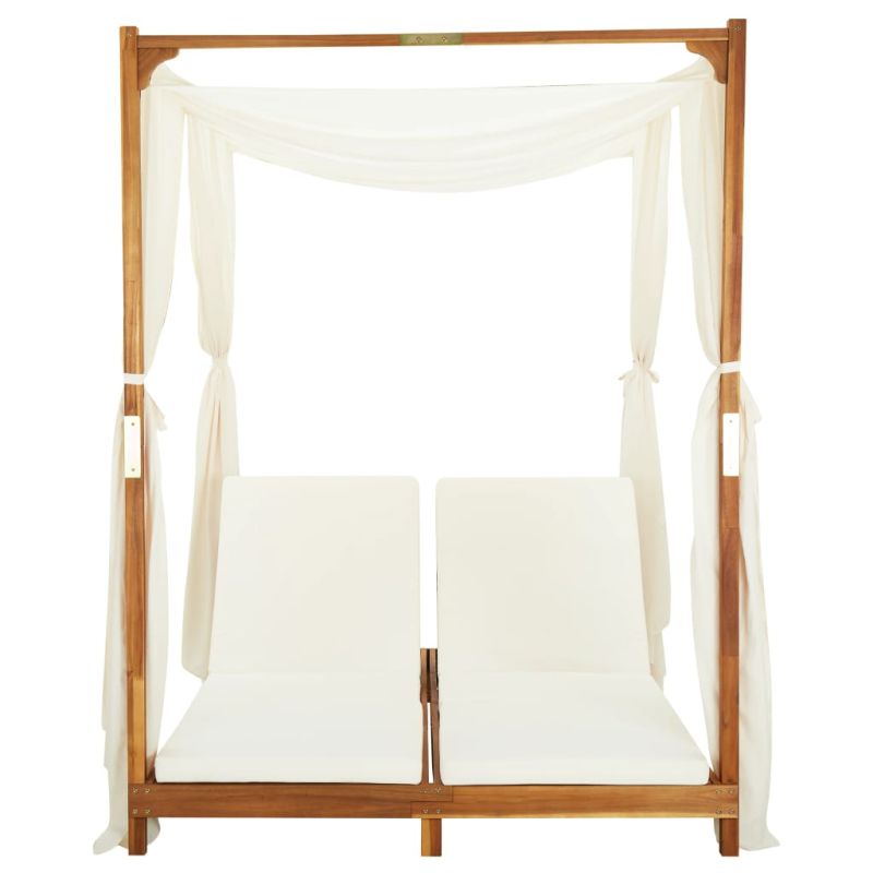 Двоен шезлонг със завеси и възглавници, акациево дърво масив