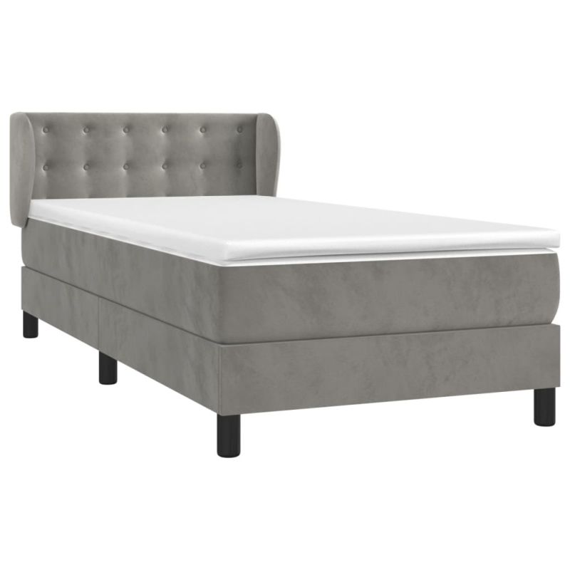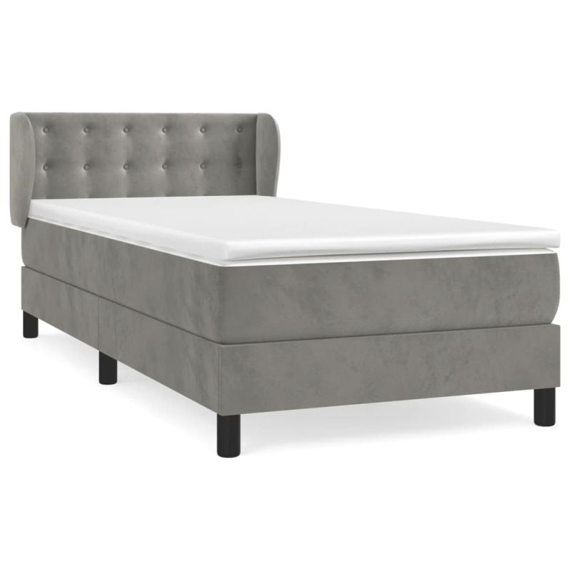 Боксспринг легло с матрак, светлосиво, 90x200 см, кадифе