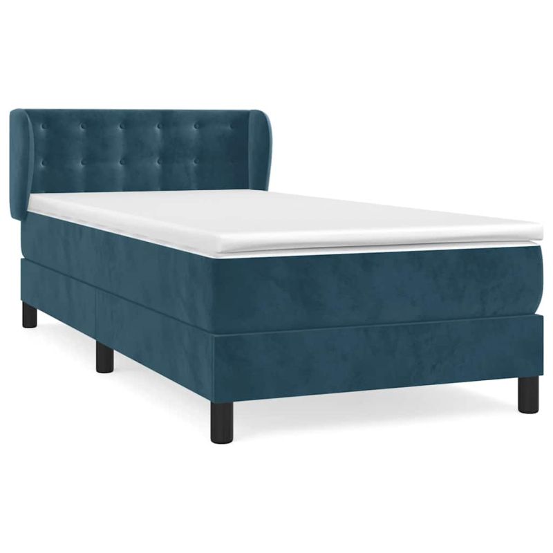 Боксспринг легло с матрак, тъмносиньо, 90x200 см, кадифе