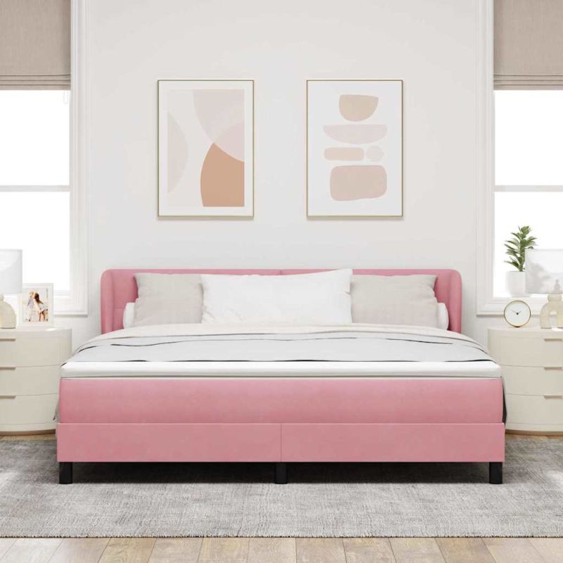 Начало Мебели Легла и аксесоари Легла и рамки за легла Легло с пружинирана основа с матрак Розово 180 x 200 cm Кадифе