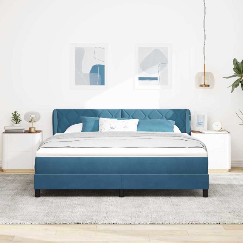 Легло с пружинирана основа Тъмносиньо 180 x 200 cm Кадифе