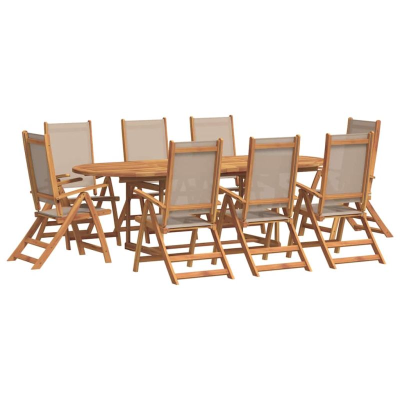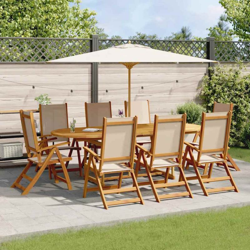 Градински трапезен комплект, 9 части, акация масив и textilene
