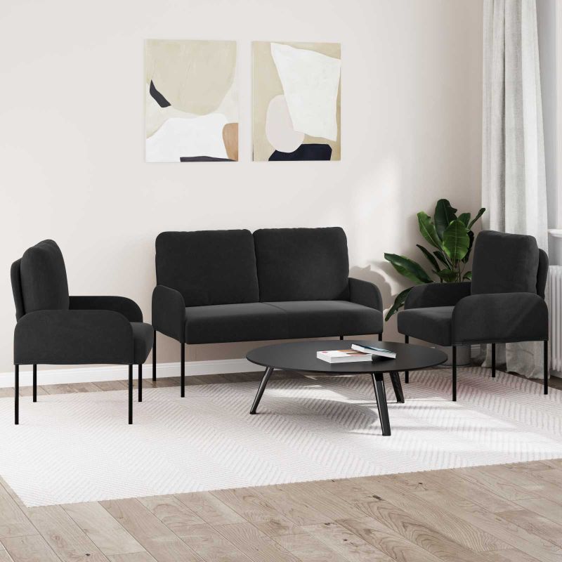 Комплекти дивани 3 pcs Черно 115 x 56 x 80 см Шперплат