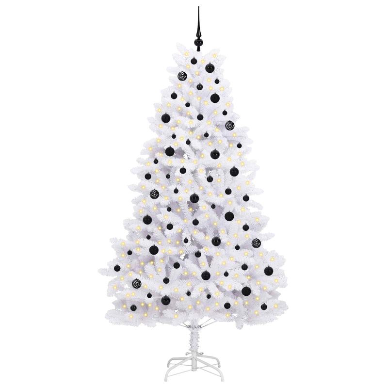 Изкуствено коледно дърво с хингед Бяло 210 cm PVC и стомана