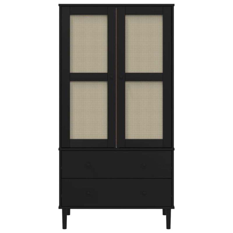 Гардероб "SENJA" ратанова визия черен 90x55x175 см бор масив