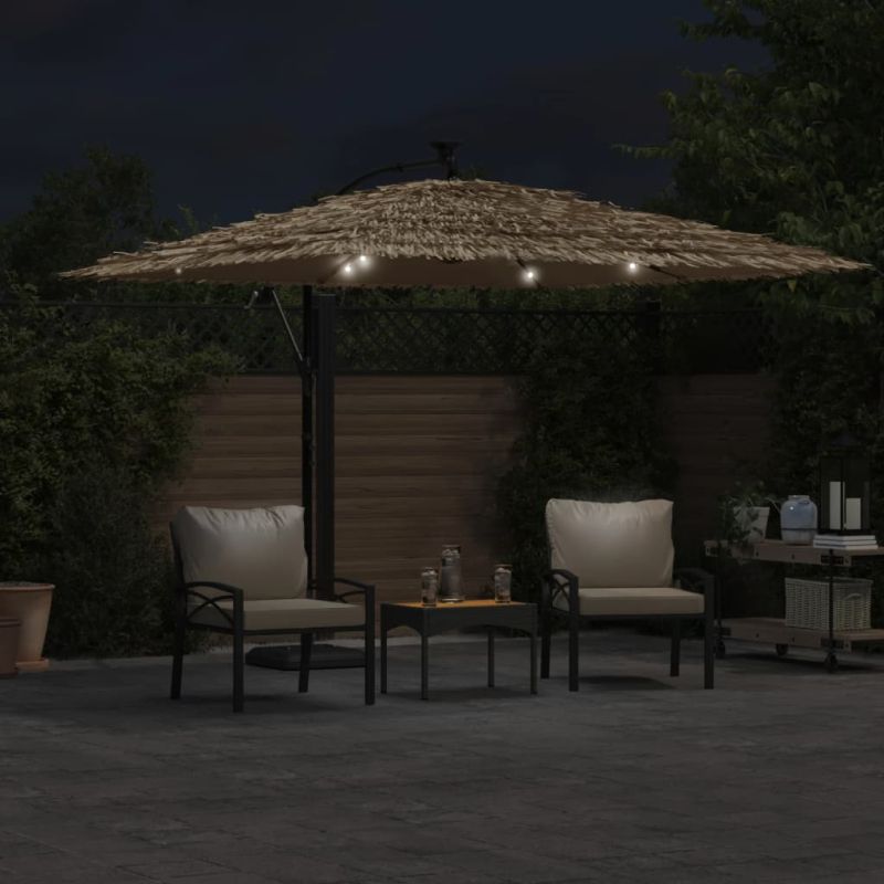 Този градински чадър с LED е идеален за създаване на сянка и защита от вредните UV лъчи на слънцето. Защита от слънце и дъжд: Изработен от издръжлив полиестер, този външен чадър предлага защита от слънце и дъжд, създавайки идеално място, където да се наслаждавате на открито.Здрава конструкция: Този градински чадър се поддържа от здрав прът и ребра в горната част, което гарантира, че покривалото остава изправено дори във ветровити дни.Механизъм с манивела: Благодарение на манивелата чадърът може да се отваря и затваря лесно.Ярки LED светлини: Интегрираните LED светлини на чадъра осветяват вашето външно жилищно пространство и създават уютна и романтична атмосфера, когато слънцето залезе. Добре е да се знае:Този продукт не е играчка! Уверете се, че децата не използват нито сенника, нито балдахина, нито основата за игра или катерене.Не използвайте открит огън (напр. градинско барбекю или скара) под или точно до този продукт.Този продукт не е 100% водоустойчив. Препоръчваме да третирате този продукт с водоустойчив спрей за по-добра водоустойчивост. Продуктът не е играчка! Уверете се, че децата не използват сенника, покривалото или основата за игра или катерене. Не използвайте открит огън (напр. градинско барбекю или грил) под или до този продукт.