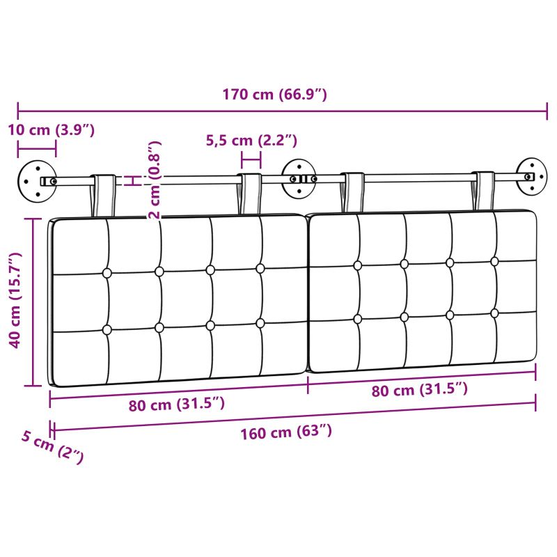 Тази висяща табла за легло предлага модерно решение, което да направи всяка спалня по-елегантна с уникалния си дизайн и чисти линии. Идеална е за хора, които искат да внесат стил и комфорт, преобразявайки визуалния вид на помещението с луксозна атмосфера. Независимо дали е за вашето легло или стая за гости, тя служи и като акцент, и като практичен елемент, предоставяйки опора и стил. Материали: Изработена от тъкан, която е мека и поканваща. Инженерната дървесина я прави здрав избор за дълготрайност, идеална за всеки дом. Комбинацията от материалите предлага стилно и трайно решение. Включени компоненти: Таблата идва с метална релса, две кръгли плочки и два дълги сваляеми колана. Те предлагат различни опции за монтаж на стена, осигурявайки стабилност и гъвкавост. Включени са и монтажни аксесоари за улеснение при инсталацията. Характеристики / Функция / Дизайн: Висящият дизайн гарантира сигурно прикрепване към стената. Меката тапицирана повърхност добавя комфорт, а дишащата тъкан прави усещането приятно. Сваляемият колан позволява гъвкавост в разположението. Препоръчителни употреби: Таблата е страхотна за всякакви спални среди, предлагайки комфорт и естетика. Модерният й вид я прави подходяща за съвременни интериори, с чиста линия, която се интегрира с различни стилове на декорация. Поддръжка и грижа: Почистването на таблата е лесно — просто я擦вайте с влажна кърпа, за да премахнете прах и мръсотия. Стремете се да избягвате контакт с силни химикали, за да запазите материала в добро състояние.