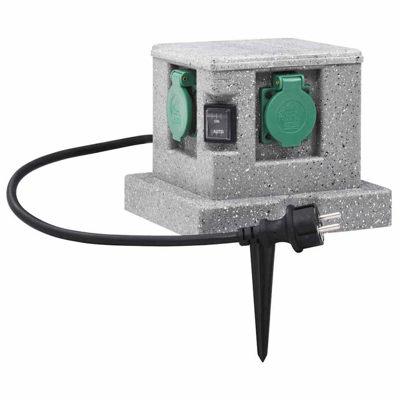Този надежден градински разклонител може да се използва за захранване на вашите градински инструменти, като косачки, триони за жив плет, системи за поливане, езерни помпи, външно осветление и др. Корпусът на разклонителя и капачките са произведени от качествена пластмаса, която може да устои на екстремни атмосферни условия и е много издръжлив. Той разполага с четири контакта, което ви дава възможност да използвате няколко уреда едновременно. Освен това включва и вграден сензор за здрач за автоматично включване и изключване. Разбира се, ръчното включване/изключване също е възможно. Контактът се доставя с гумен захранващ кабел със защита от пренапрежение. Този уред не е предназначен за използване от лица (включително деца) с намалени физически, сетивни или умствени способности или с недостатъчен опит и познания, освен ако не са получили надзор или инструкции за използването на уреда от лице, отговорно за тяхната безопасност. Този продукт не е играчка. Не позволявайте на деца да си играят с уреда. GPSR