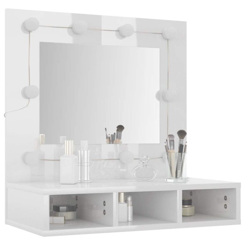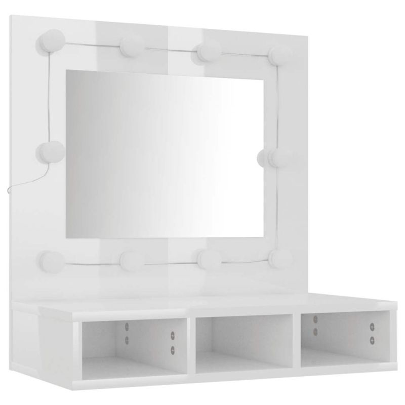 Огледален шкаф с LED, бял гланц, 60x31,5x62 см
