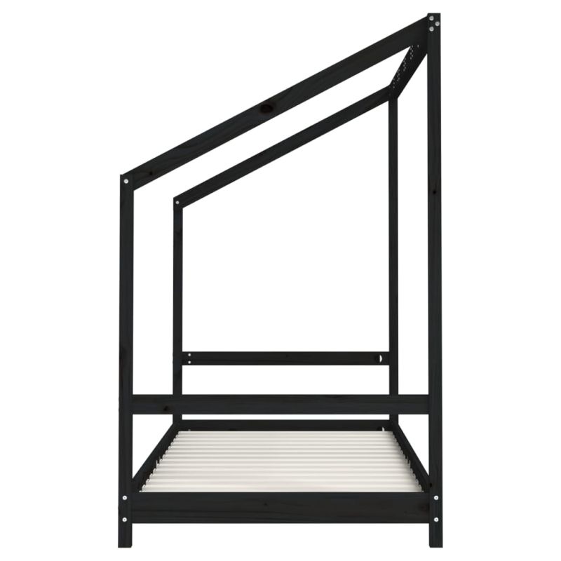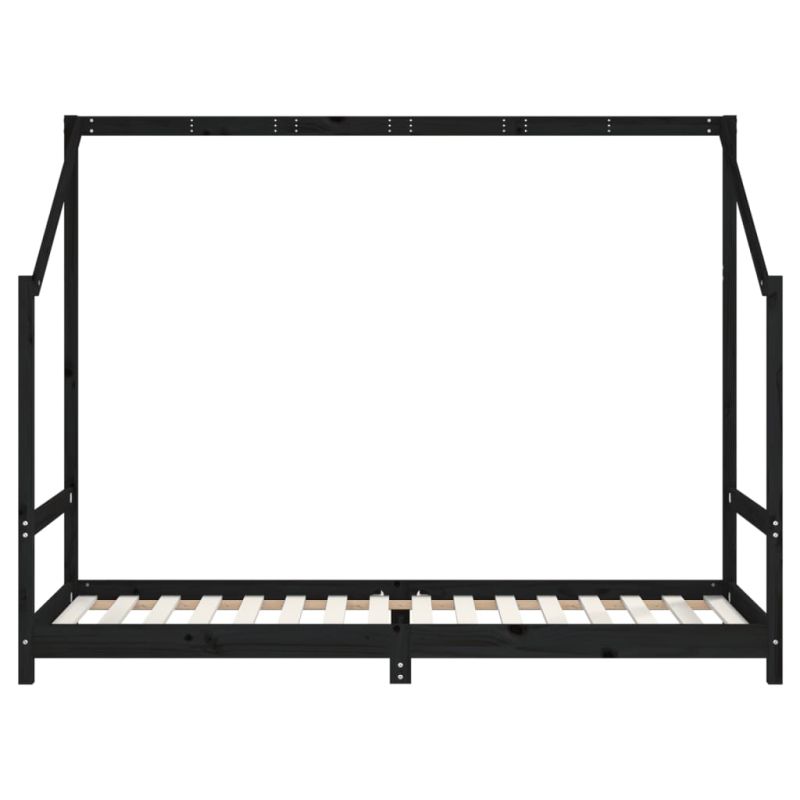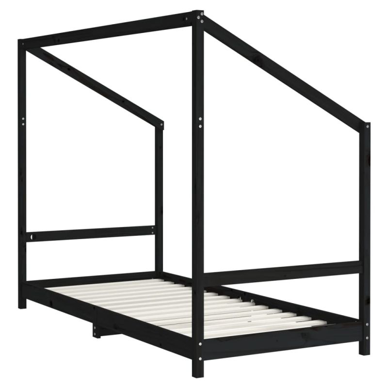 Рамка за детско легло, черна, 90x200 см, масивно борово дърво